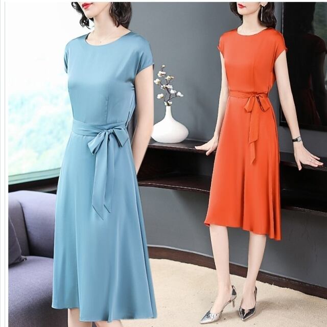 バックリボン ワンピース ワンピース スカート ロングスカート フレアスカート シャツワンピース ロング 大きいサイズ ノースリーブ 膝丈