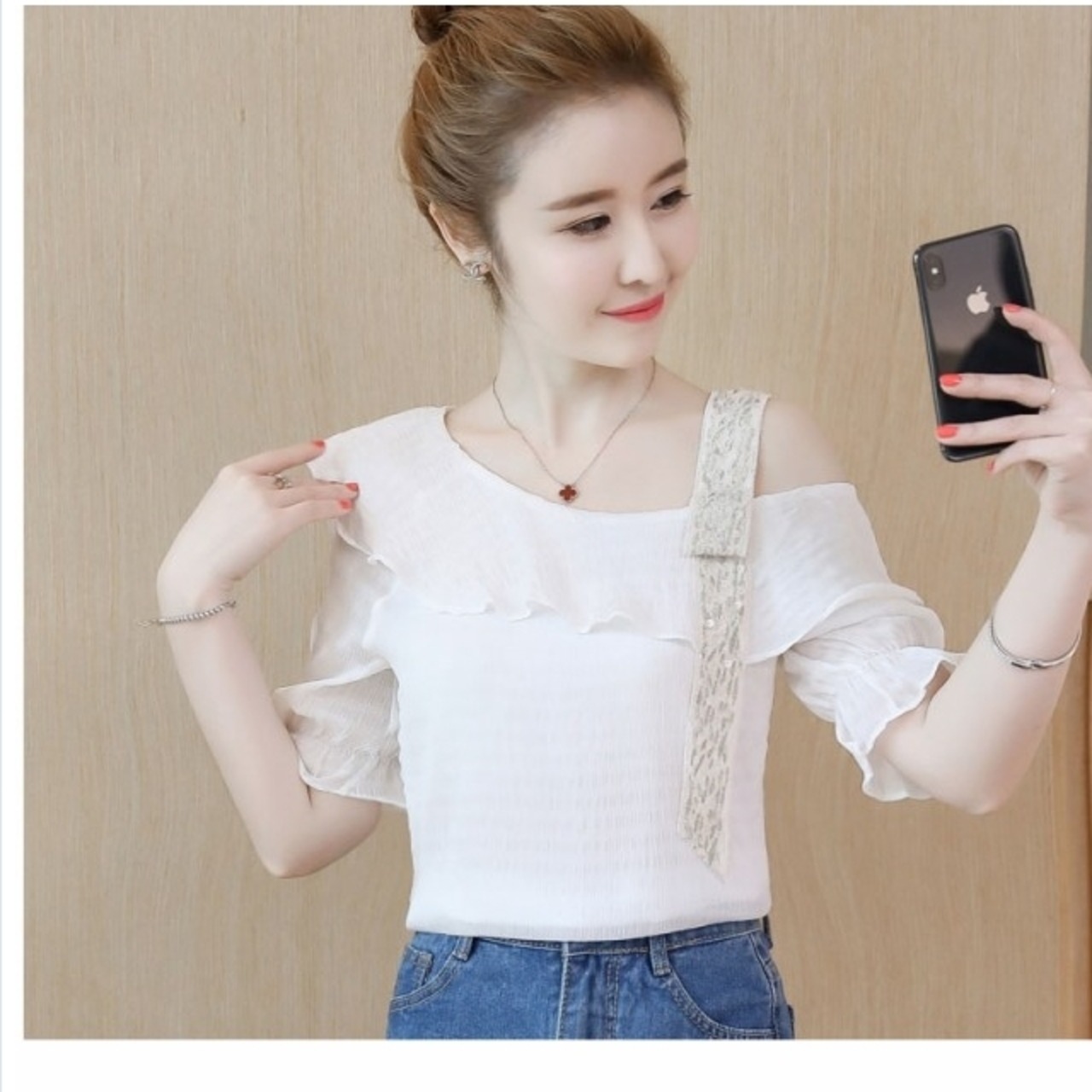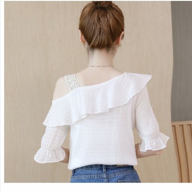 夏服 レディース チェック柄 シフォンブラウス オフショルダーブラウス キャミソール ティアードトップス フレア袖 袖フリル レディース
