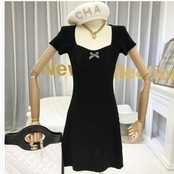 バックリボン ワンピース トゥービーシック ワンピース ニット ロング 半袖 リボン 40 黒 ブラック レディース