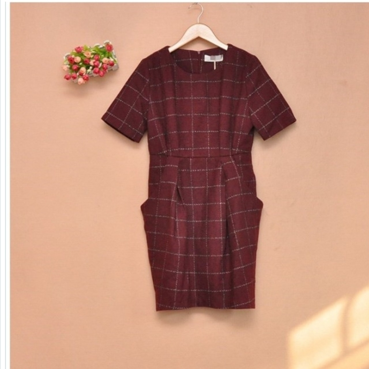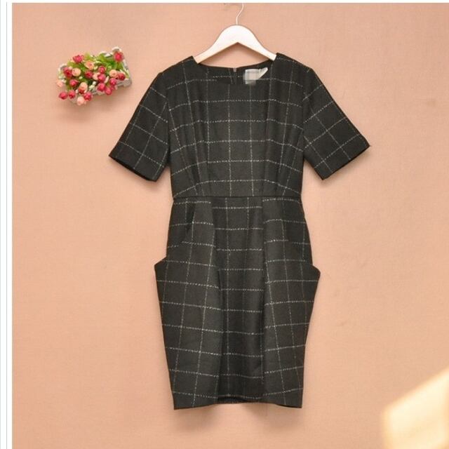 バックリボン ワンピース タロウホリウチ 格子柄ワンピース 半袖 台形 ミニ 2 グレー 白 レディース
