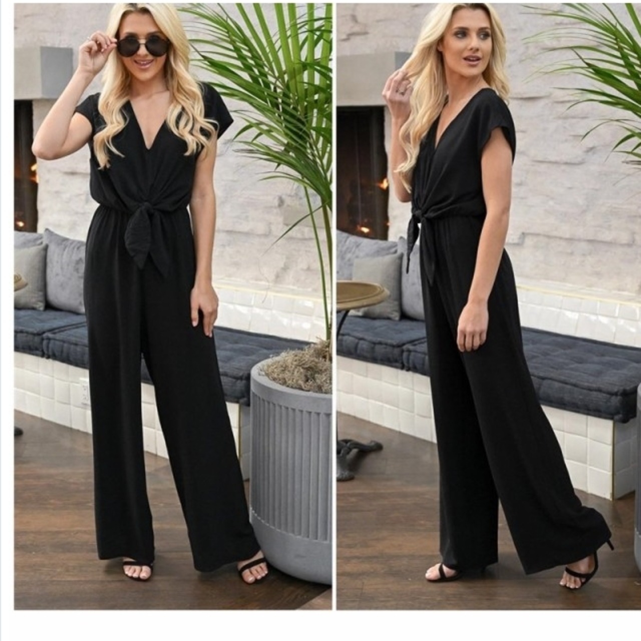 夏服 レディース ツイストデザイン 背中開き 背中見せ ロング丈 オールインワン サロペット ジャンプスーツ ワイドパンツ ノースリーブ