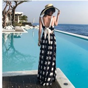 バックリボン ワンピース ワンピース ロングワンピース サマーワンピース リゾートワンピース ギンガムチェック ロング丈 マキシ丈 背中