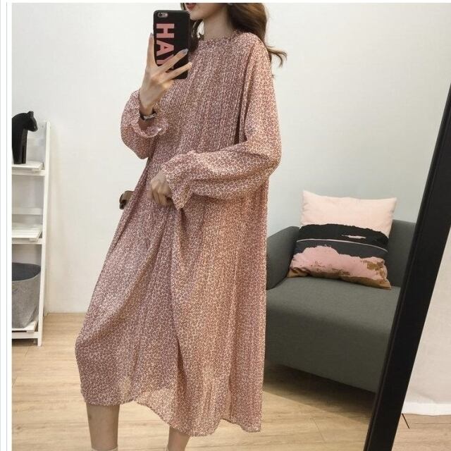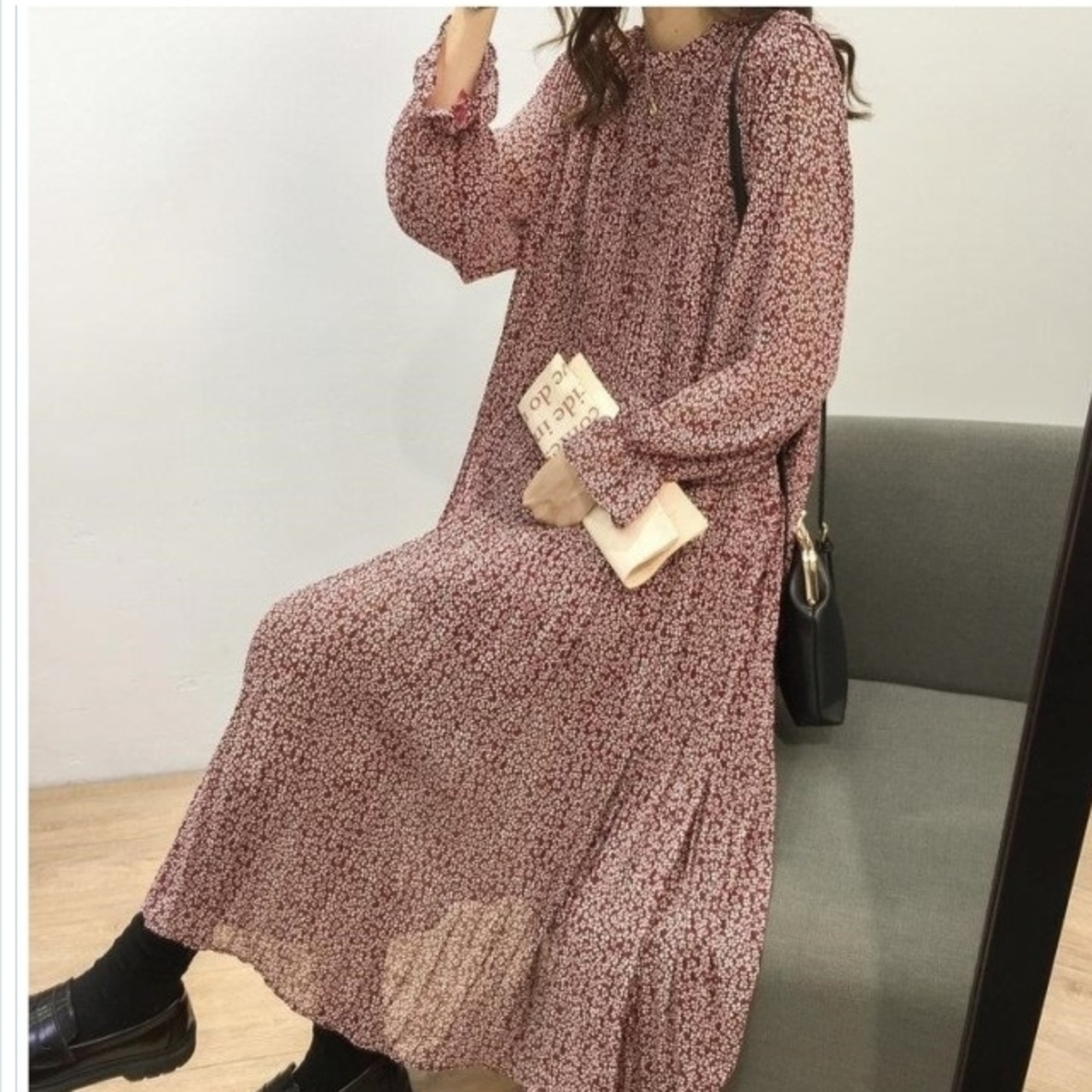 バックリボン ワンピース ワンピース レディース 長袖ワンピース 花柄ワンピース レトロ ロング クラシカル 花柄 上品 小柄 膝下
