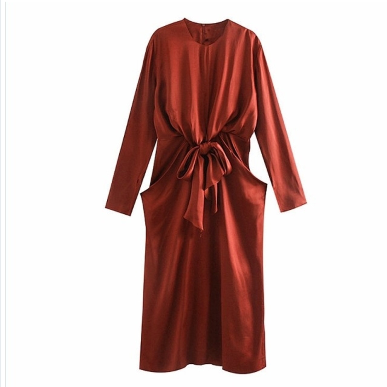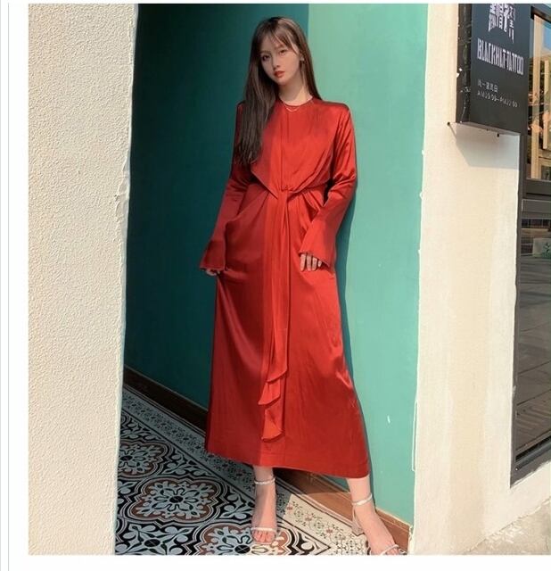 バックリボン ワンピース ワンピース ひざ丈 大きいサイズ レディース 大人の落ち感カットジョーゼット ウエスト リボンサイドスリット