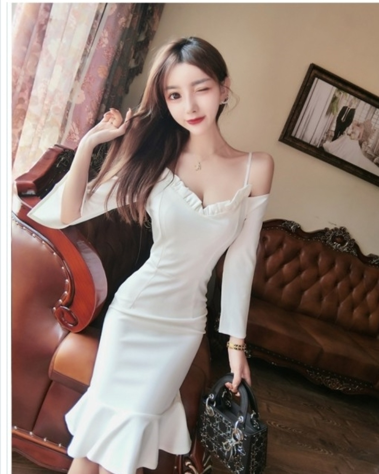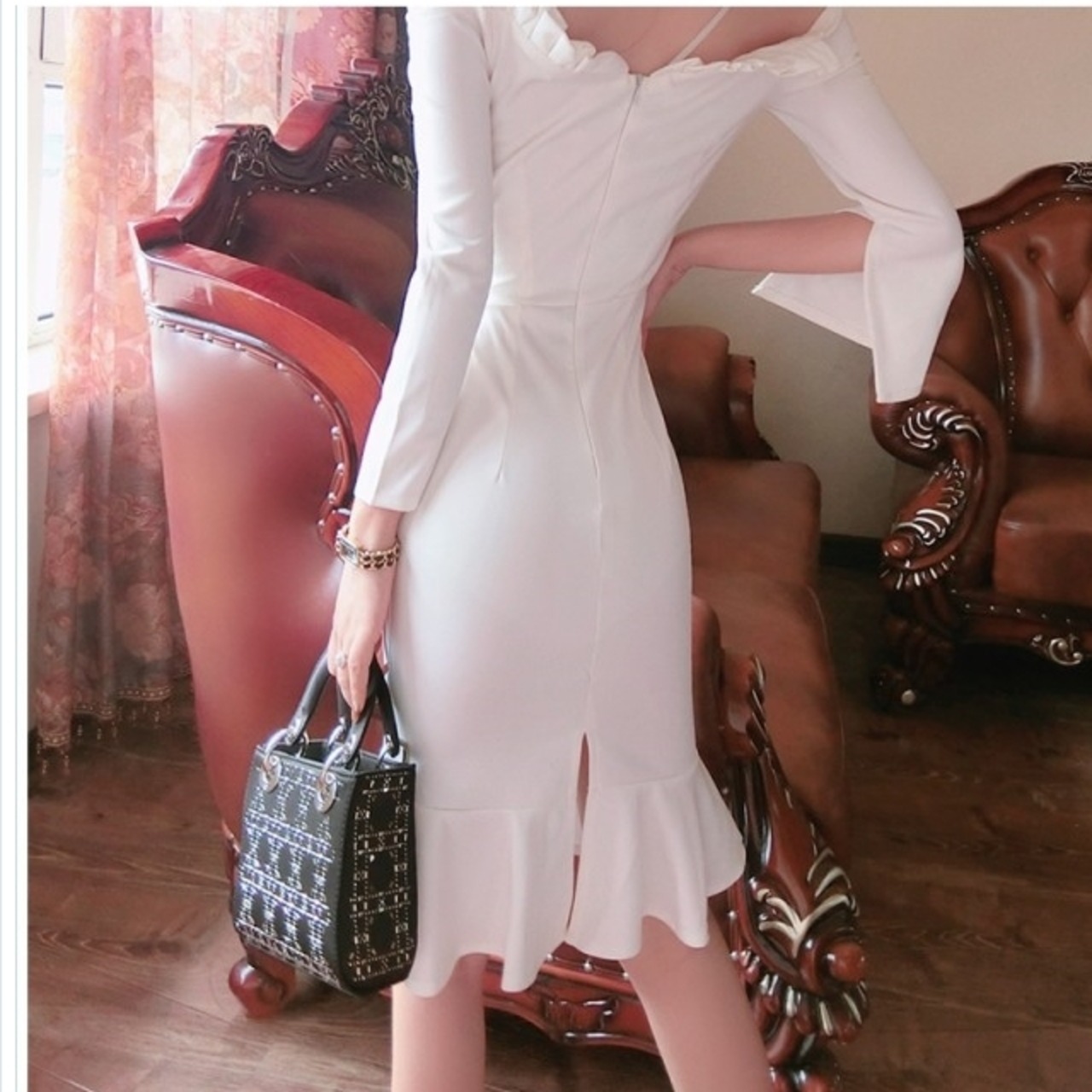 バックリボン ワンピース トーアソーア オフショルダー ワンピース レディース セクシー 膝丈 長袖 マーメイド 01(ブラック, 01 - M)