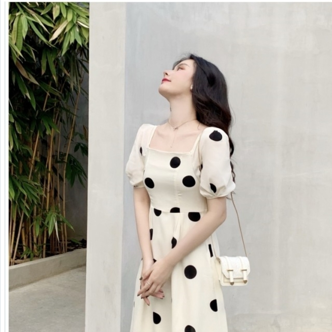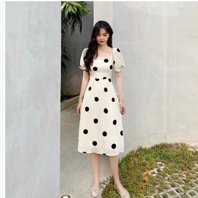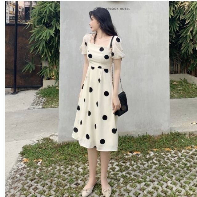 バックリボン ワンピース ワンピース レディース ドットワンピース フリルワンンピース ハイウエスト ドット バックリボン フェミニン ラ
