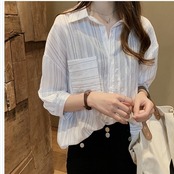 シースルー トップス 長袖 トップス ロングシャツ サマーアウター 羽織り 長袖 ストライプ シースルー ゆったり フェミニン シンプル 春