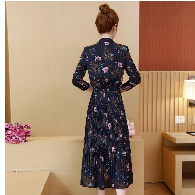 プリーツスカート ロング 花柄 ワンピース レディース 40代 オシャレ シフォン きれいめ 秋服 ロング丈 プリーツ マキシワンピース 長袖