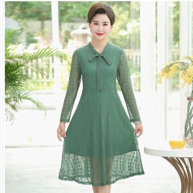 バックリボン ワンピース ワンピース タイト ミニ 膝上 総レース 胸元リボン ボックスプリーツ ネイビー フェミニン ガーリー エレガント