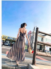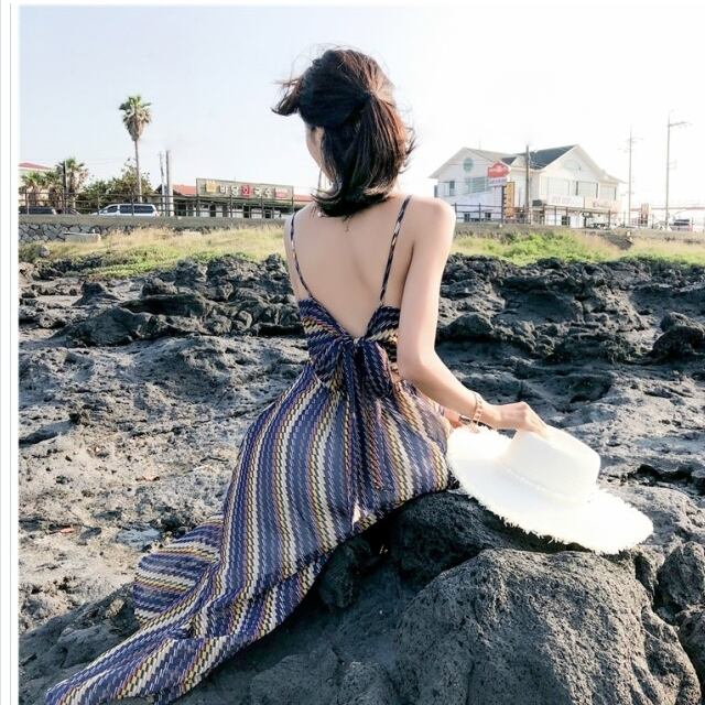 バックリボン ワンピース ワンピース レディース マキシワンピース キャミソールワンピース バックシャン バックリボン 幾何学柄 ストラ