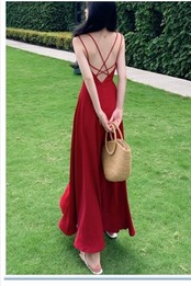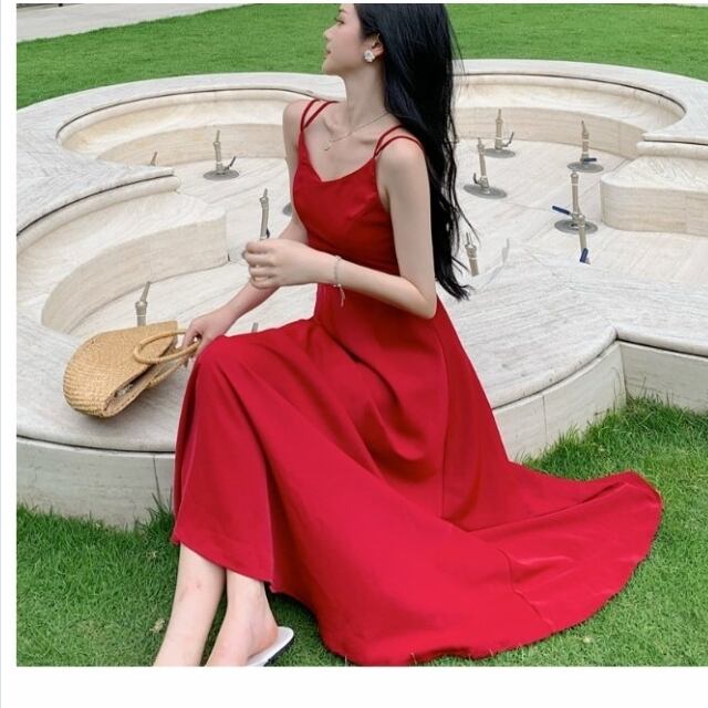 サマー ドレス マキシ 大きいサイズ キャミワンピ ロング サマードレス Vネック 無地 ノースリーブ 背中見せ 背中あき バッククロス シ