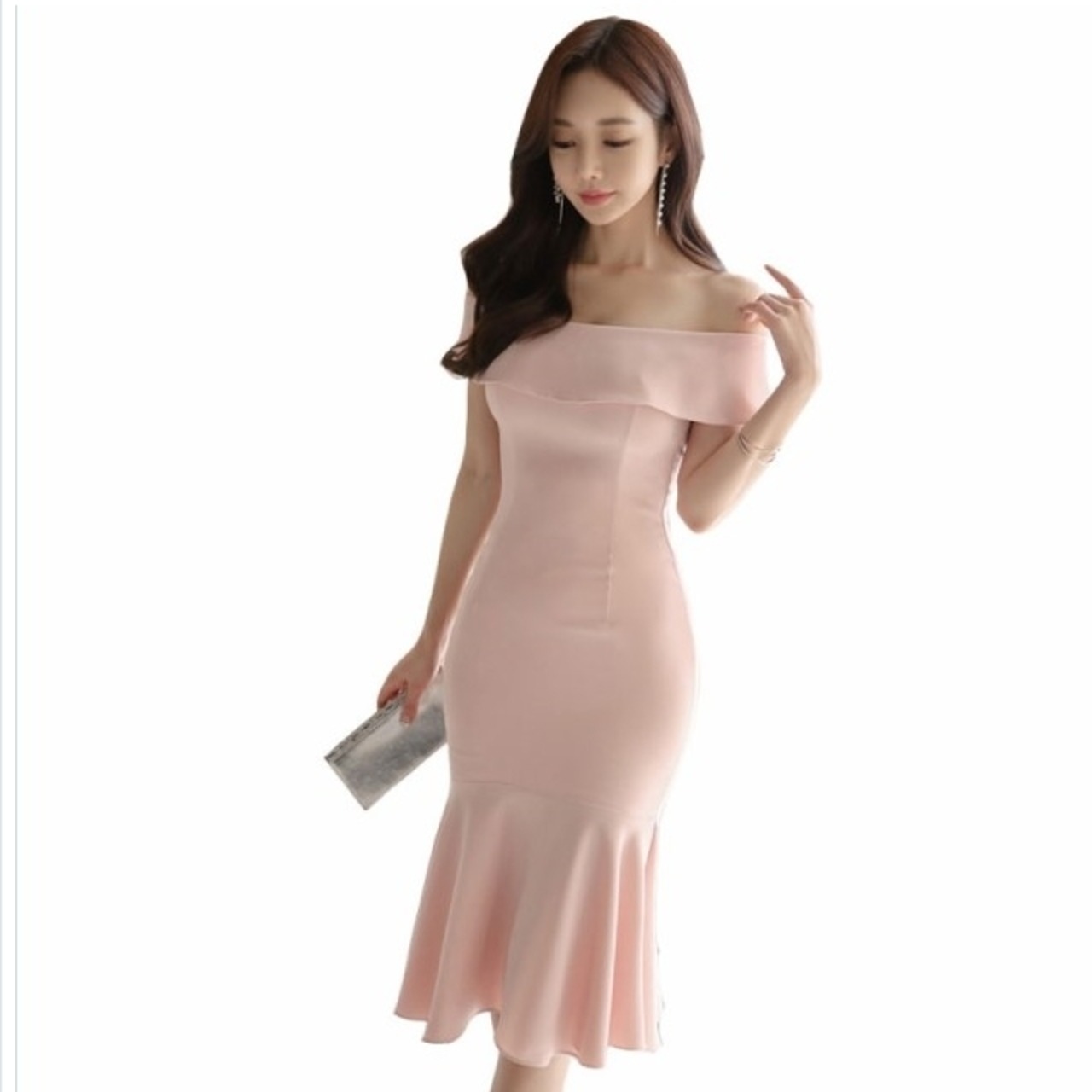 バックリボン ワンピース ワンピース レディース オフショルワンピース フィッシュテールワンピース スリット ワンピ セクシー 個性的 無