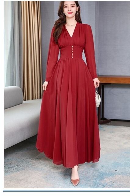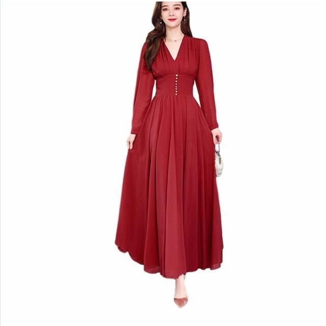 サマー ドレス マキシ エレンディーク リゾート サマードレス ワンピース 長袖 ロング 02 赤 レディース