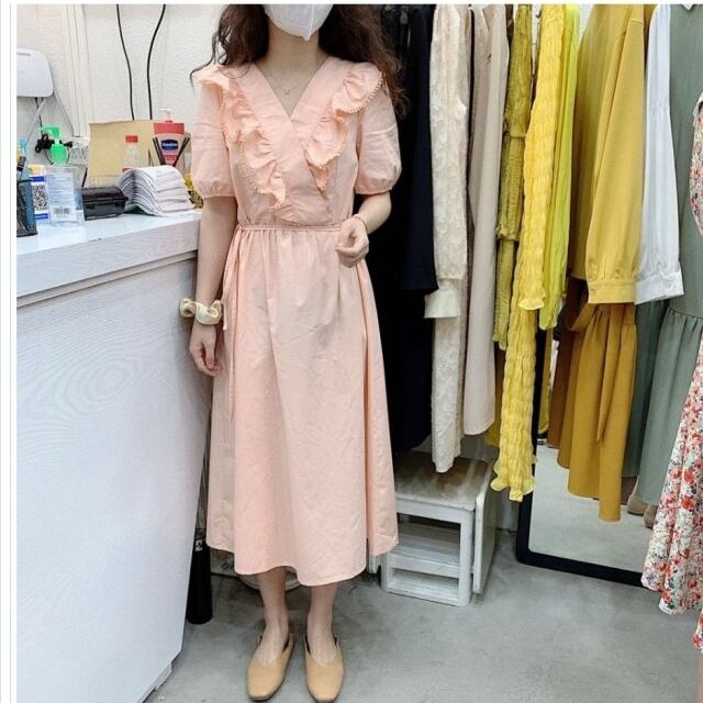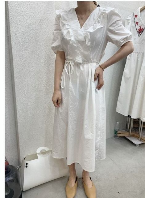 バックリボン ワンピース ワンピース ドレス ロング マキシ丈 フリル バックリボン クロス 長袖 カフス フリルスカート ハイウエスト 20