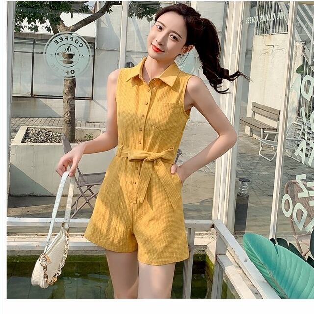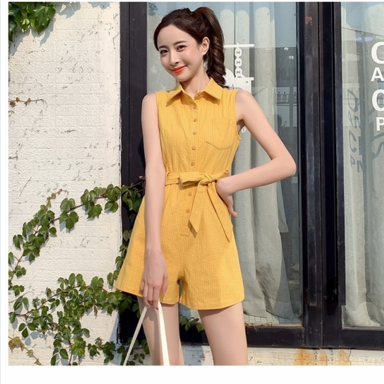 サマー ドレス マキシ ワンピース ノースリーブ コットン 麻 涼しい 夏 サマーワンピ サマードレス イエロー ウエストリボン 前開き