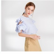 大きいサイズ トップス シフォン 夏新作 大きいサイズ トップス ポンチ シフォン 異素材使い クルーネック ボリュームスリーブ プルオー
