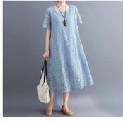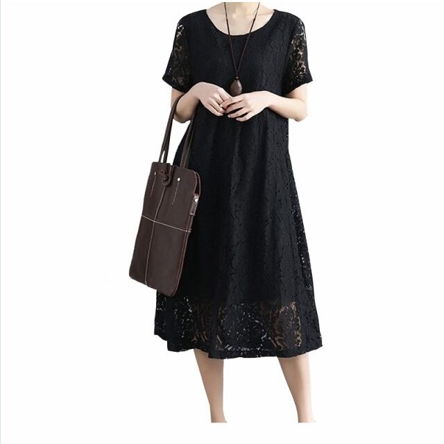 サマー ドレス マキシ 総レース ドレス ワンピース オールレース フォーマル 7部袖 3色展開 大人 夏(ピンク, M)