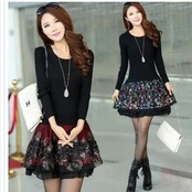 バックリボン ワンピース ワンピース ミニ タイト パンチング カットレース 無地 レイヤード ブラック ホワイト 黒 白 バイカラー シック