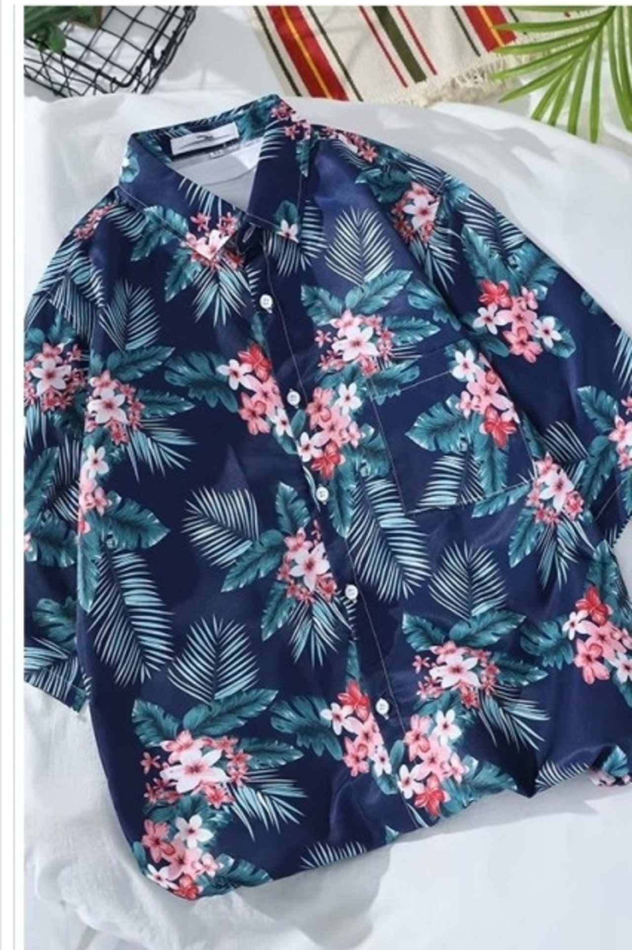 大きいサイズ レディース トップス 半袖 シャツ アロハシャツ トップス 半袖 花柄 紺 ネイビー レディース 開襟シャツ リゾート ゆったり