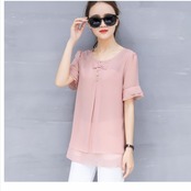 大きいサイズ トップス シフォン トップス レディース チュニック レース シフォン 半袖 切り替え フレア袖 トップス 花柄 夏 新作 おし