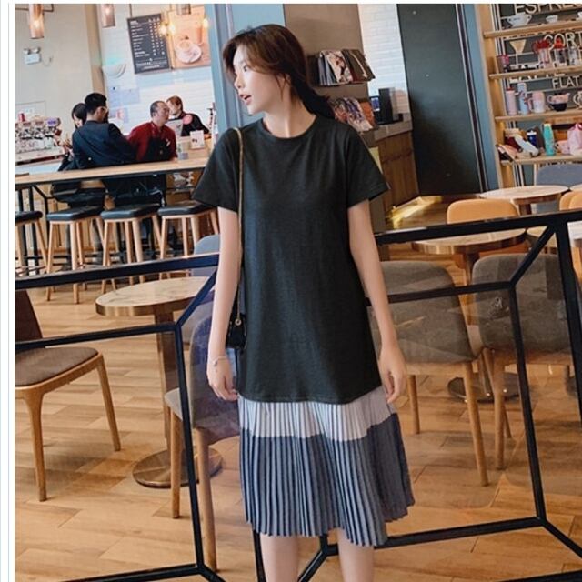 大きいサイズ レディース トップス 半袖 夏新作 大きいサイズ トップス 接触冷感 スリット入り 裾ストライプ柄切替 Vネック 半袖 チュニ