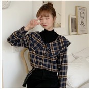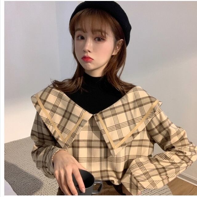 フェミニン ブラウス ブラウス レディース おしゃれ チェック 長袖 ハイネック 重ね着風 フェイクレイヤード ブラック ベージュ 大人可愛