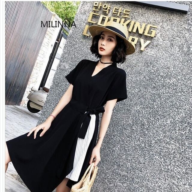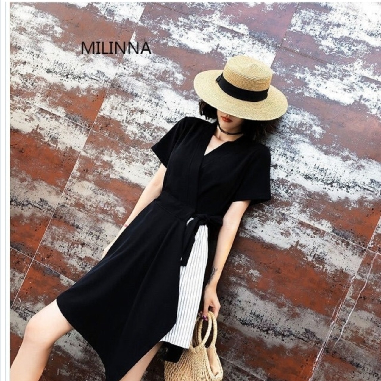 バックリボン ワンピース ギンガムチェック Vネック バックコンシャス バックリボン フレア キャミソールワンピース ミディアム丈