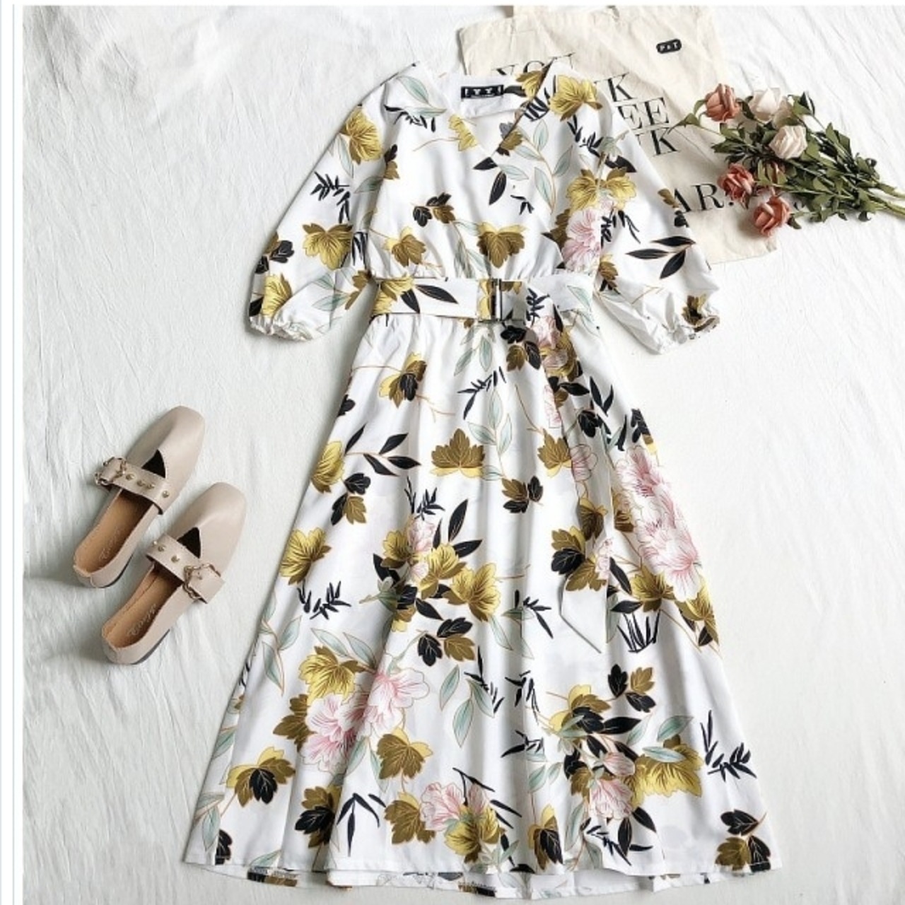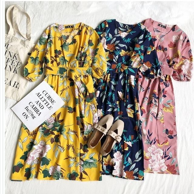 バックリボン ワンピース オリエンタル花柄 ニットワンピース フラワープリント 存在感たっぷりニットワンピース お呼ばれパーティーにも