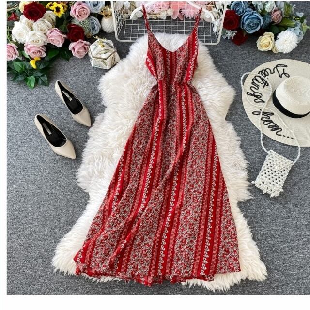 サマー ドレス マキシ ワンピース レディース ビーチ ロング マキシ丈 夏 キャミワンピース 柄物 シフォン