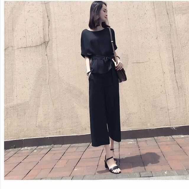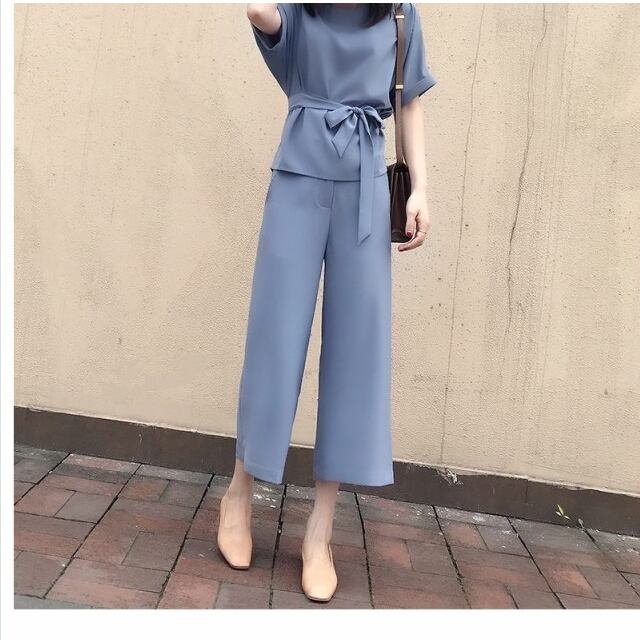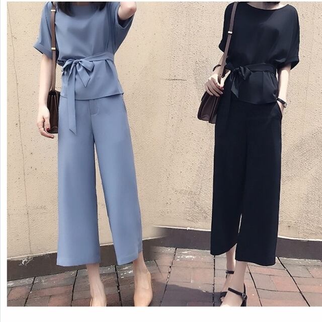 大きいサイズ トップス シフォン セットアップ レディース 春 シフォン 大きいサイズ 半袖 リボン ブラウス ワイドパンツ ガウチョパンツ