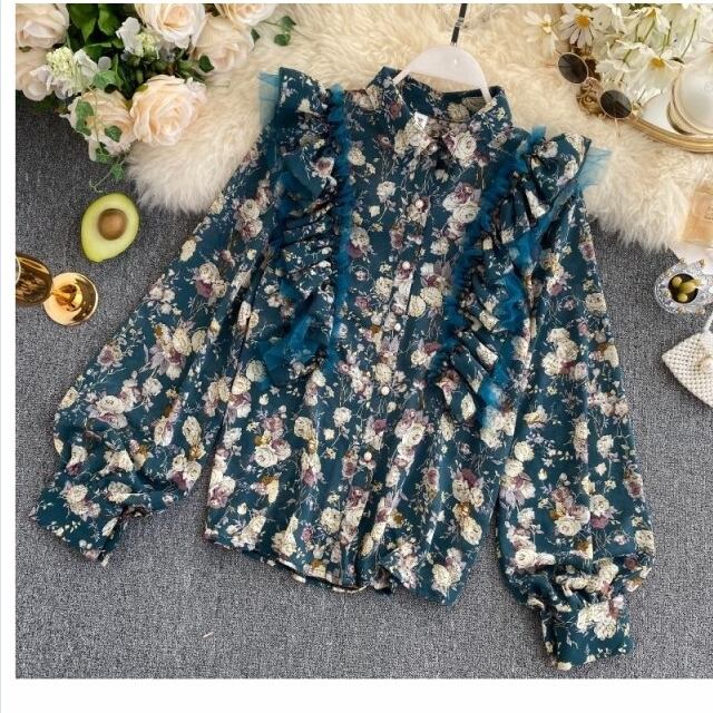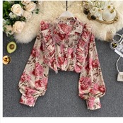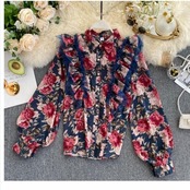 大きいサイズ トップス シフォン ブラウス シャツ トップス シフォンシャツ 花柄 リボン 透け感 トランペットスリーブ 韓国