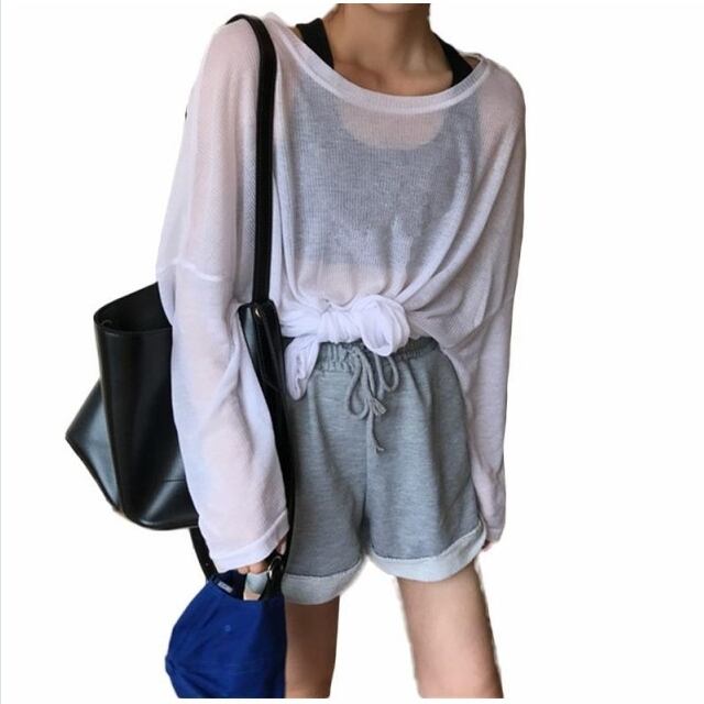 シアー トップス 春夏新作 トップス シースルー トップス カットソー ニット 長袖 セーター 韓国 ファッション レディース トップス オル