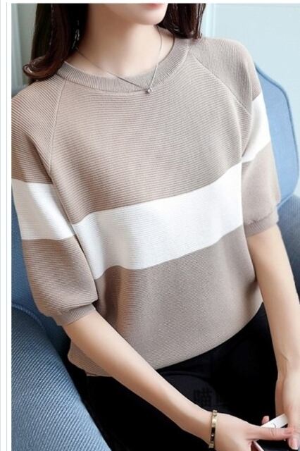 大きいサイズ レディース トップス 半袖 サマーニット レディース Vネック 半袖 春 夏 トップス tシャツ ニットソー 薄手 クルーネック