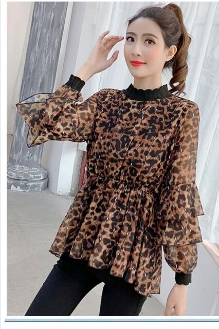 大きいサイズ トップス シフォン 長袖 レーストップス シフォンブラウス 透け感 Vネック 穴あき くり抜き ヒョウ柄 シャツ セクシー