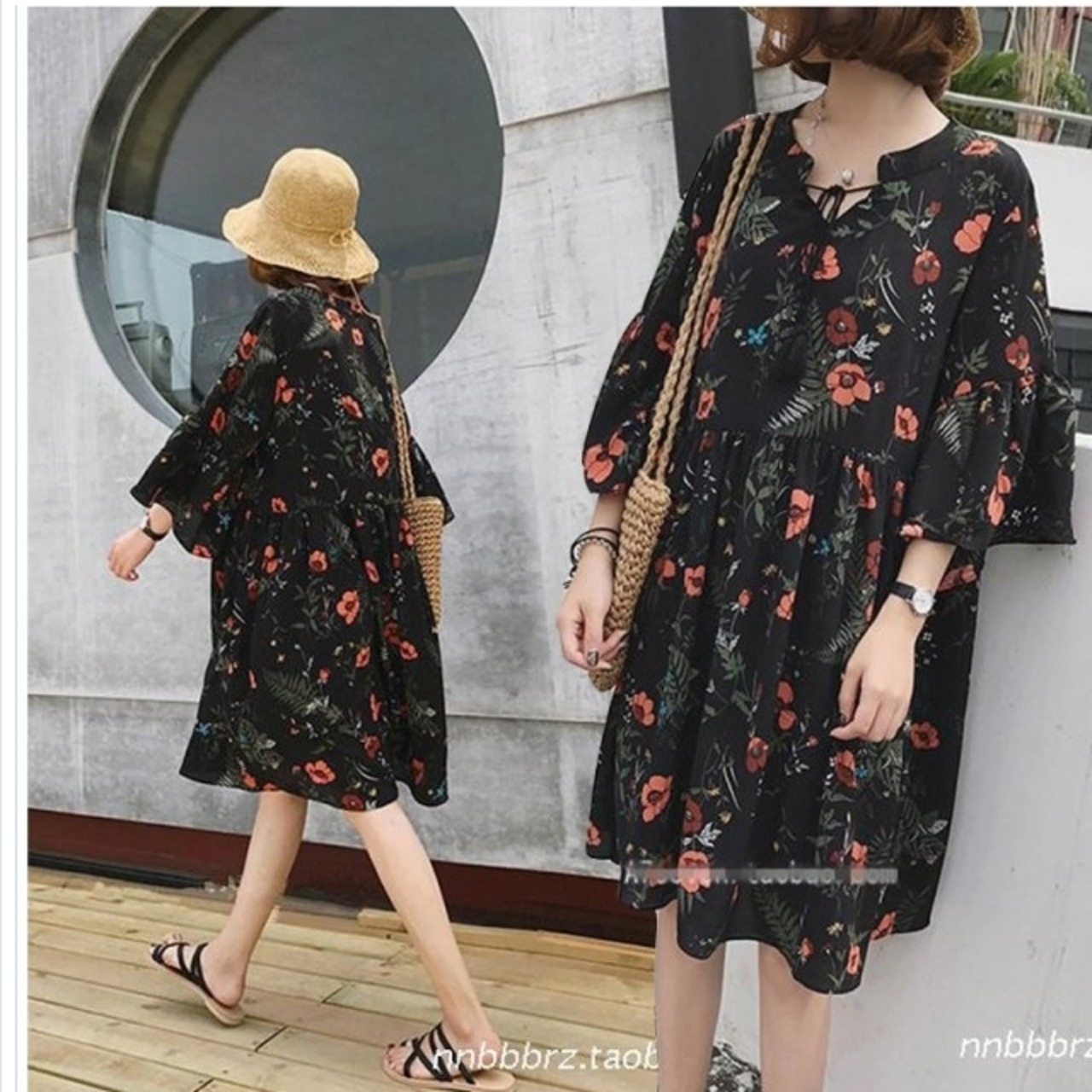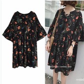 韓国 ファッション レディース 大きいサイズ 大きいサイズ レディース チェリー さくらんぼ柄 ロングワンピース ワイドシルエット 前後ス