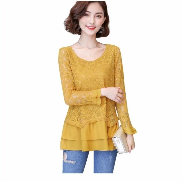 大きいサイズ トップス シフォン レースシフォン長袖ブラウス ブラウス チュニック トップス レース シフォン 長袖 3色 大きいサイズ
