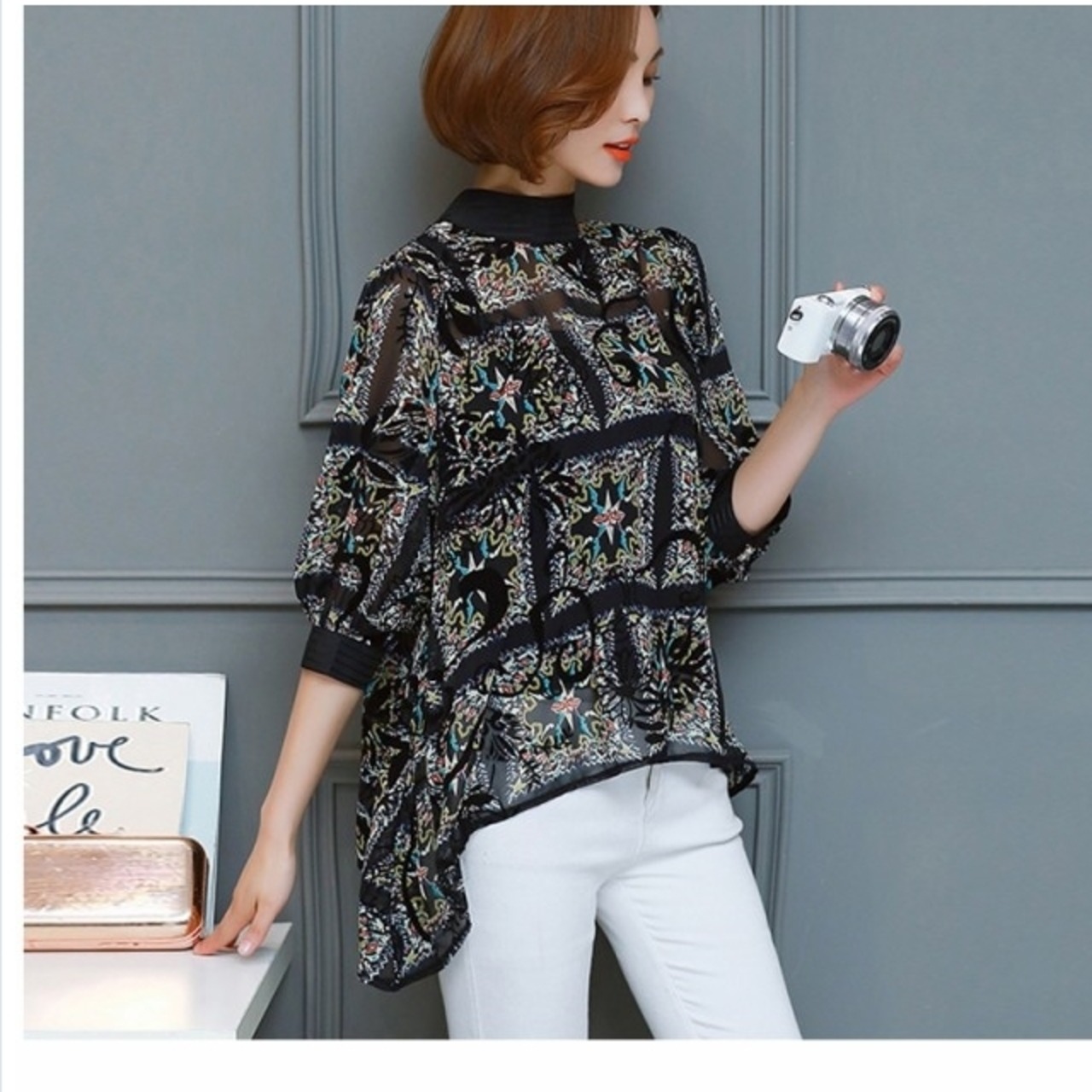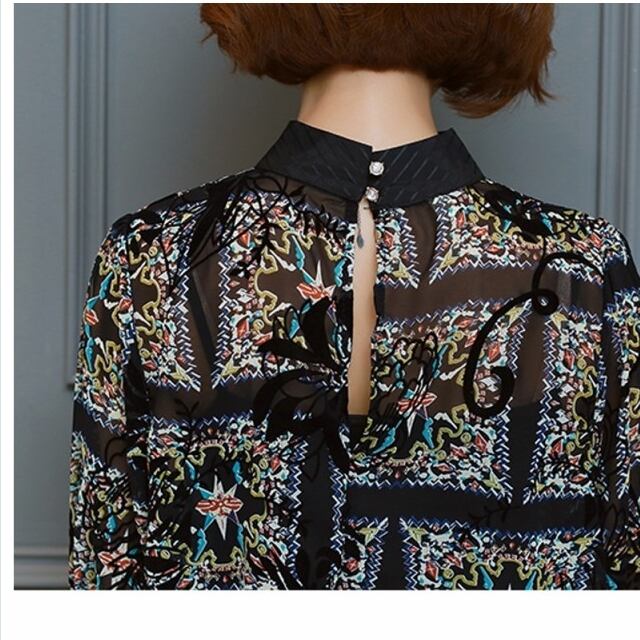 大きいサイズ トップス シフォン シフォン シースルー トップス ハイネック 大きいサイズ レディース トップス 黒 通勤服 カジュアル 3L