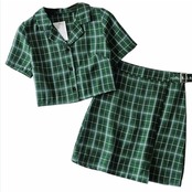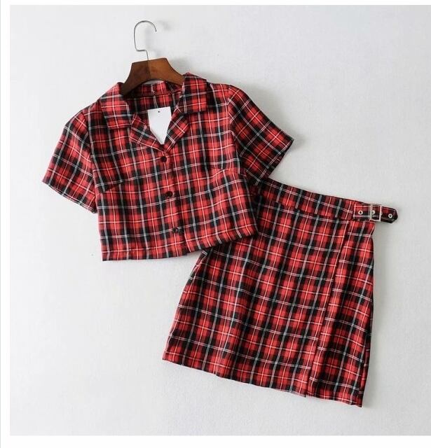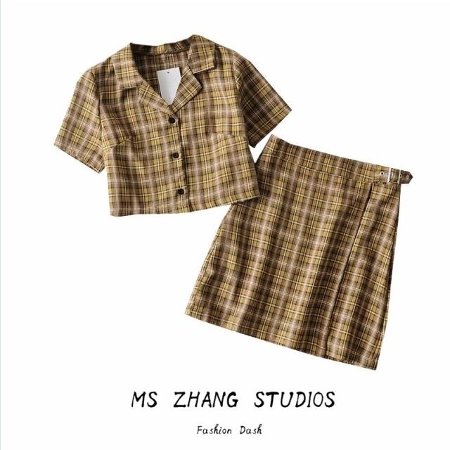 レトロ柄 ワンピース シャツワンピース ひざ丈 体型カバー タータンチェック柄 半袖 フレア レトロ 大人可愛い ガーリー カジュアル 韓国