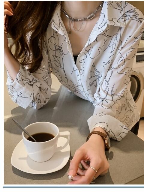 大きいサイズ トップス シフォン ブラウス レディース 春秋新作 おしゃれ 長袖ブラウス プリント 大きいサイズ シャツトップス ブラウス