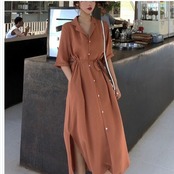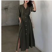 韓国 ファッション レディース 大きいサイズ シャツワンピース ロング 春 夏 秋 ワンピース シャツ レディース 半袖 大きいサイズ バルー