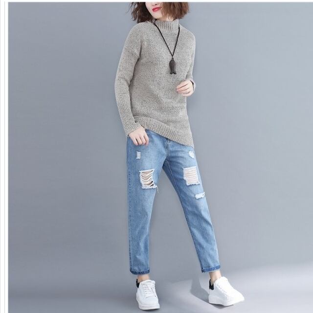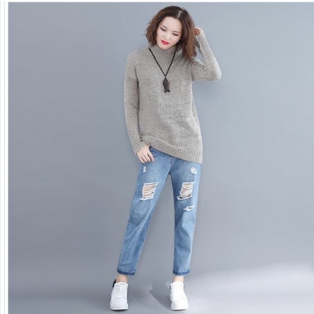 韓国 ファッション レディース 大きいサイズ Tシャツ カットソー 大きいサイズ レディース ラインストーン使い 杢調 アンサンブル 杢グレ