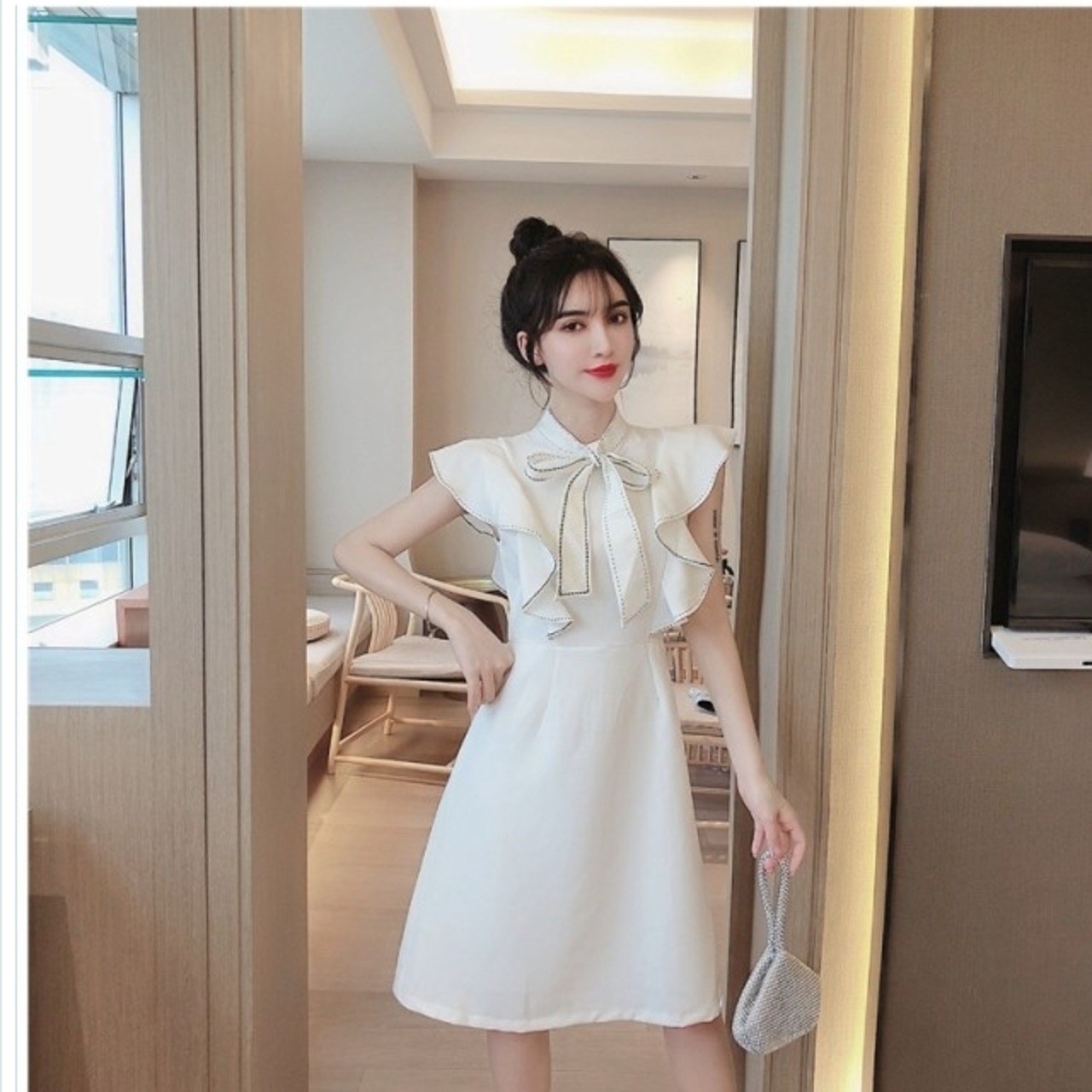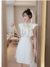 韓国 ファッション レディース 大きいサイズ ワンピース 大きいサイズ ミニ ショートスカートドレス 無地 制服 OL 学生 ガーリー エレ