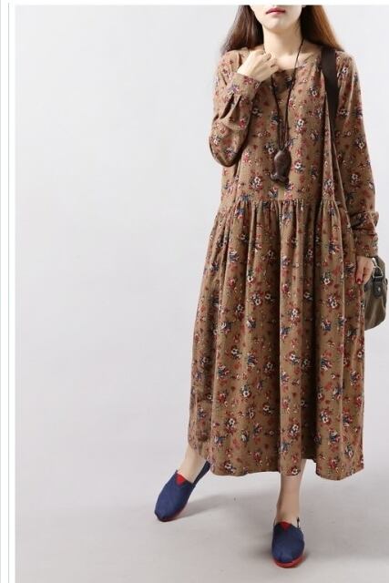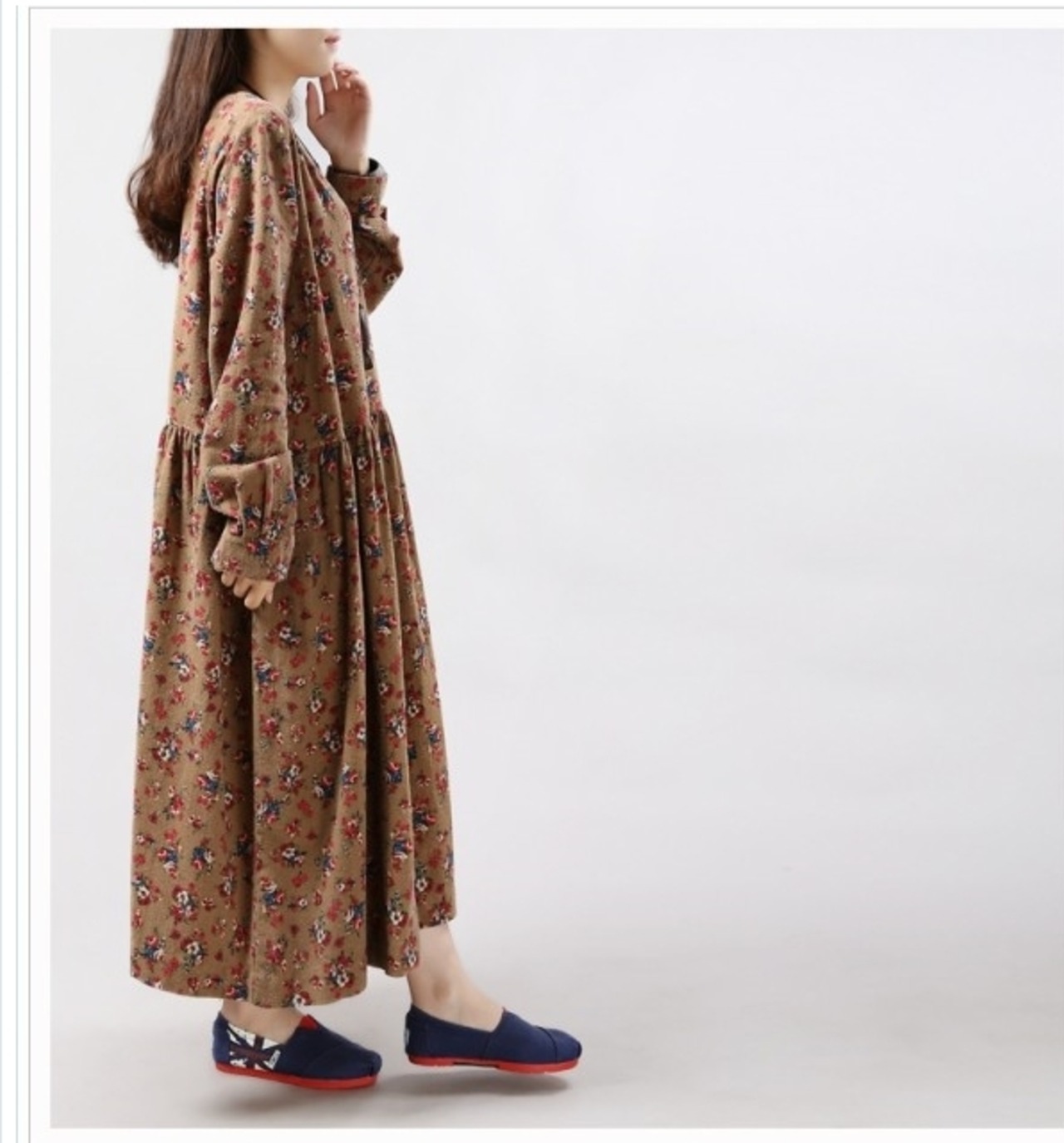 韓国 ファッション レディース 大きいサイズ 花柄ワンピース レディース ゆったり ロング ミモレ丈 体型カバー ガーリー カジュアル ゆる