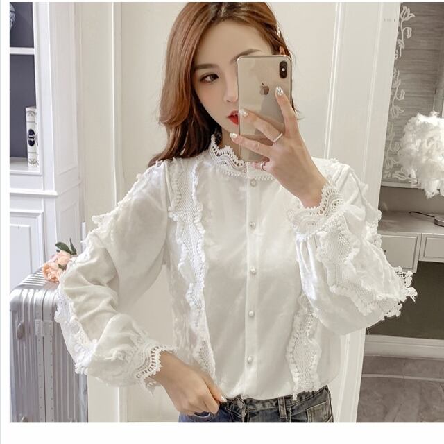 大きいサイズ トップス シフォン トップス レース シャツ レディース 長袖 大きいサイズ シフォン リブ袖 アプリコット ホワイト ガーリ