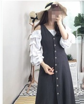 韓国 ファッション レディース 大きいサイズ ワンピース 秋 レディース 長袖 大きいサイズ ワンピ ぽっちゃり Aライン ひざ下丈 前ボタン