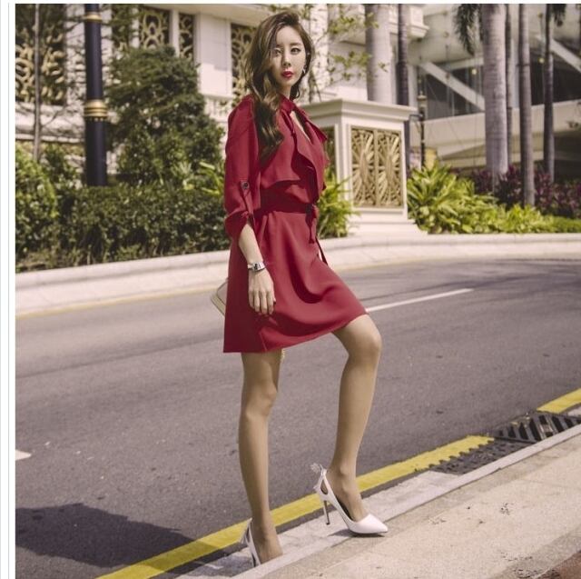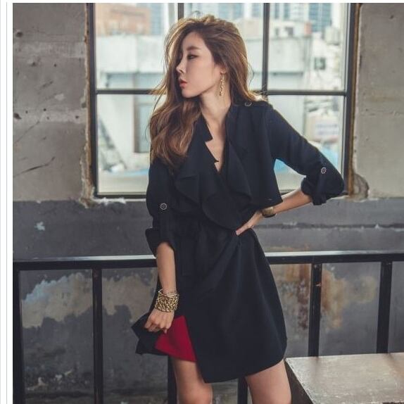 韓国 ファッション レディース 大きいサイズ ミニワンピース 大きいサイズ ゆったり トレンチ風とろみワンピース 春ワンピース 新作ワン