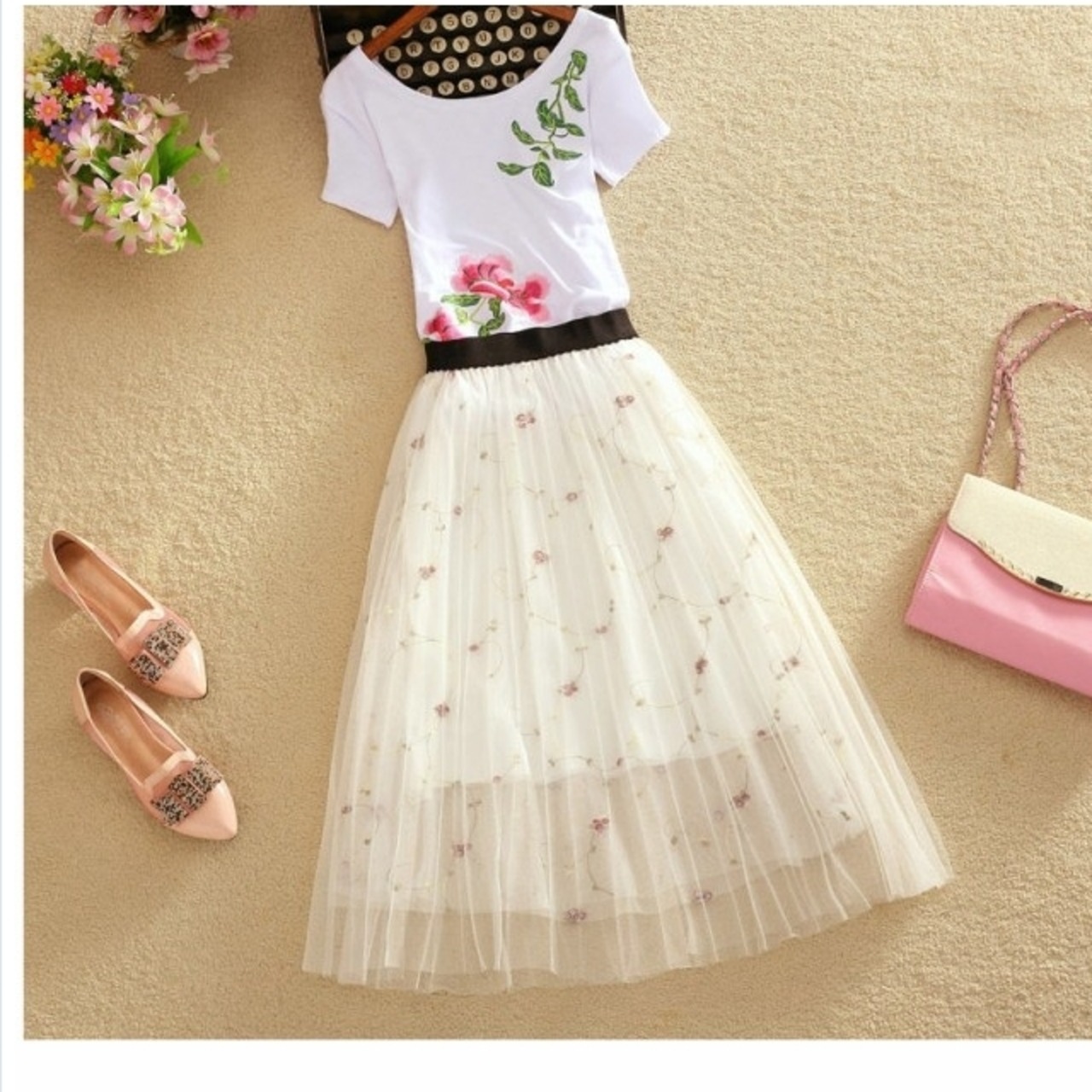 チュールスカート 大きい 全3カラー エレガントな花柄チュールスカート