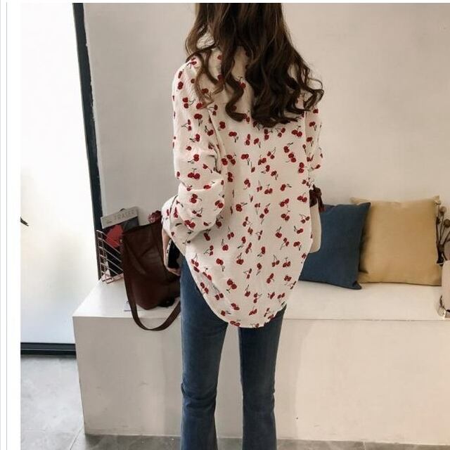 韓国 ファッション レディース 大きいサイズ ブラウス レディース おしゃれ 春秋 オフィス 韓国風 通勤 トップス チェリー柄ンシャツ ブ
