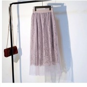 チュールスカート 大きい スカート ひざ丈 大きいサイズ レディース チェック プリーツ チュール重ね グレージュ 黒 4L ニッセン