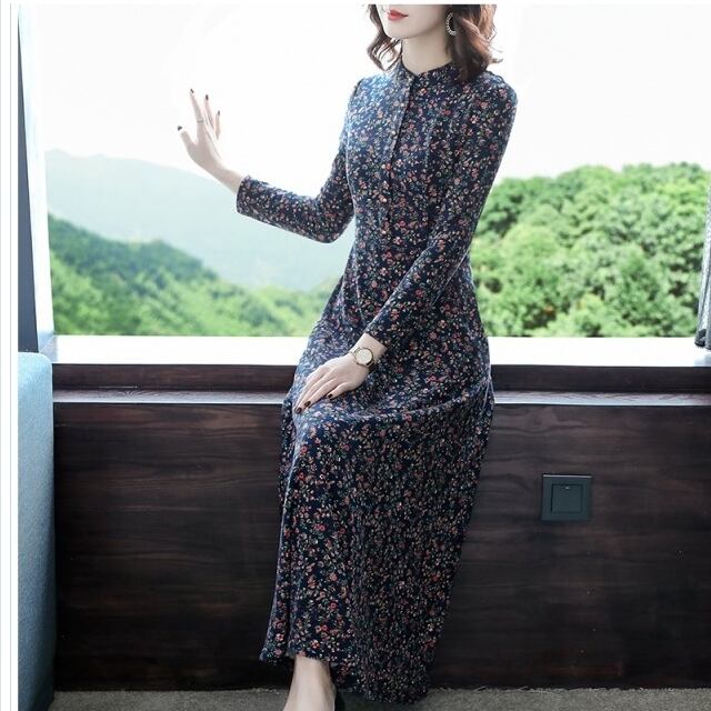 韓国 ファッション レディース 大きいサイズ ワンピース ロング 春 花柄 シフォン 大きいサイズ ロングワンピース シフォンワンピース ロ